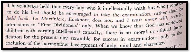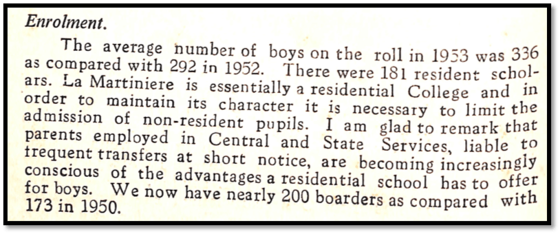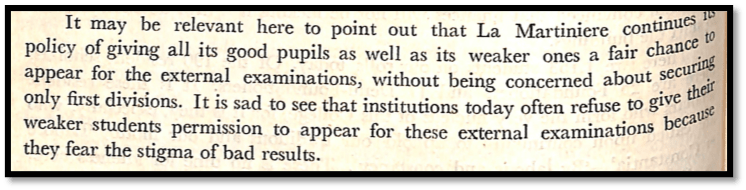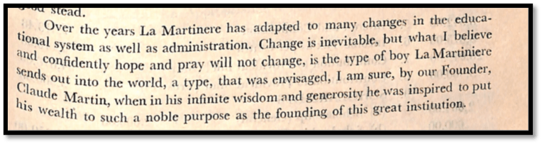 The timing was opportune. The College had already decided that there was to a resurgence of Foundation pupils. Considering the Will of the Founder, its legal implications, the carte blanche authority to take in children irrespective of religion and caste and such socially divisive considerations, it was agreed in principle, that the ‘experiment’ would be implemented in La Martiniere College, Lucknow, with certain riders.