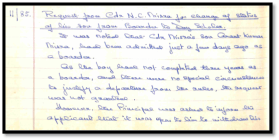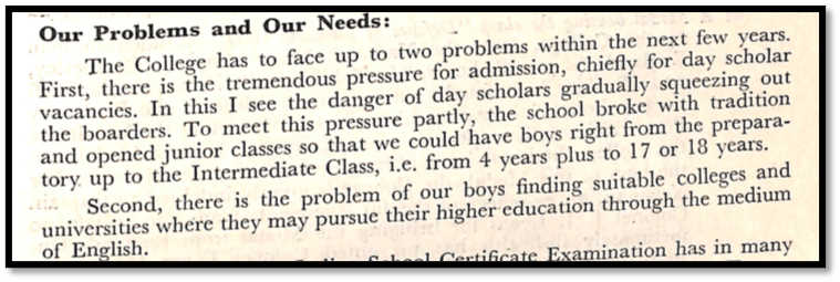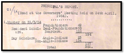 - With the withdrawal of the British and Anglo-Indians from India following Independence, it was expedient to admit Indian boys as day scholars. Later Indian boys shared facilities for boarding and lodging when admitted as resident scholars.