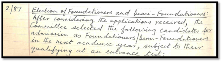 Under the scheme created to implement the Will, “Foundationers” are students supported from the Founder’s endowment. They are provided tuition, boarding, lodging, clothing and education at free of cost. This support exists because of the Founder’s charitable bequest, not as a discretionary welfare measure.