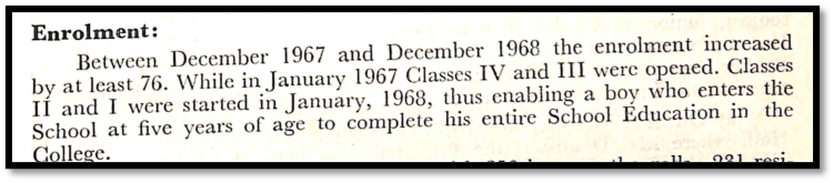 - Provision was made for lodging, boarding and domestic arrangements for at least 25% of the total pupil strength. Residence in the College was compulsory for Foundation pupils.