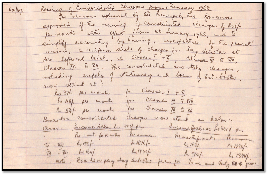 - Skewered fee policy and self-imposed restrictions, not envisaged by the Founder, required that numbers admitted had to be multiplied to make ends meet. This could only be done by admitting day scholars whose numbers soon overtook the resident scholars. This rapidly changed the tone of the institution.