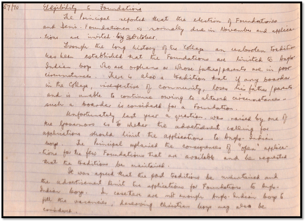- The Founder’s Will and Scheme of Administration required Foundationers to be of European origin or Anglo-Indian ancestry.