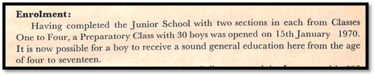 - The Founder Will and the Scheme of Administration envisaged a school for boys, irrespective of race and religion.