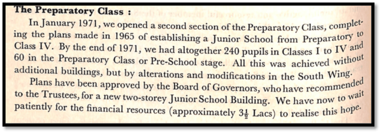 - Junior classes were sanctioned. Multiple sections were sanctioned. Pre-school groups were introduced. Class strength burgeoned. The western character was replaced largely by non-westernised staff and Hindi speaking pupils.