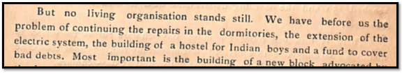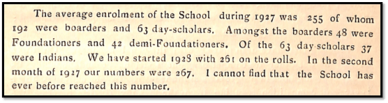 The immediate upshot of these reduced figures was the immediate provision for the admission of Indian boys to make up 15% of the Boarding House strength.