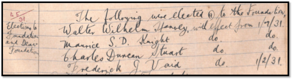 The Principal’s Annual Report for 1923, delivered on Prize Day, 1924 confirmed that there were 100 scholars assisted by the Foundation. The breakup of numbers of Foundationers and demi-Foundationers was not quoted, but from 1924, the number of Full Foundationers was maintained at a maximum of 50, while the number of demi-Foundationers was increased to 50.