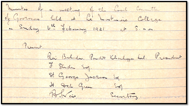 It is fortunate that the College has scrupulously maintained administrative records, the primary source of which are the Minutes of the meetings of the Local Committee of Governors and to a large extent the Annual Reports of Principals.