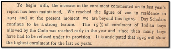 Admitting Indians was publicized as an ‘innovation of importance’ when referred to in the Principal’s report of 1920.